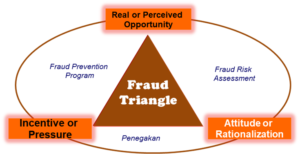 Secara umum, timbulnya fraud merupakan gabungan antara motivasi dan kesempatan. Motivasi muncul karena adanya dorongan kebutuhan, sedangkan kesempatan berasal dari lemahnya pengendalian intern dari lingkungan, yang memberikan kesempatan terjadinya fraud. Semakin besar dorongan kebutuhan ekonomi seseorang yang berada dalam lingkungan pengendalian yang lemah, maka semakin kuat motivasinya untuk melakukan fraud.